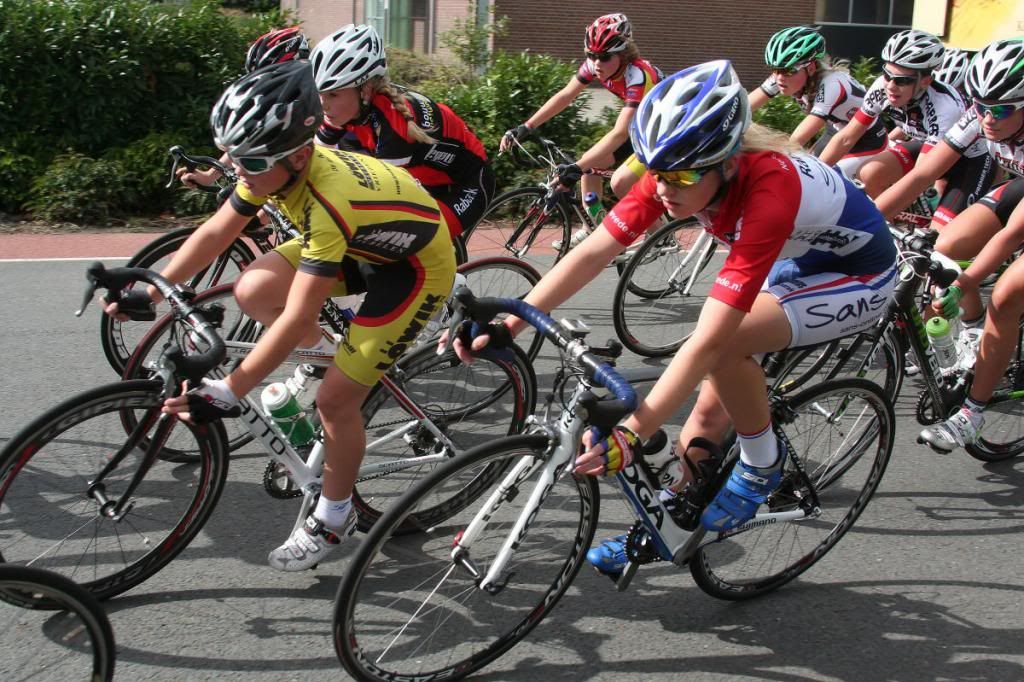 Vandaag naar Rotterdam, ik had daar nog nooit gereden. We waren mooi op tijd, dus rustig het parkoers verkend. Alleen de categorieën 4 t/m 7 mochten vandaag rijden. Cat. 4 en 5 samen en cat .6 en 7 samen, dit kon ook makkelijk, want er waren niet zoveel deelnemers. Categorie 6 had 13 deelnemers en categorie 7 maar 7 deelnemers. Meteen vanaf de start werd er hard gereden en ontstond er na 1 ronde al een kopgroep van 7 renners, 3 renners van cat 7 (met een groter verzet) en 4 renners van cat. 6, waarvan ik het enige meisje was. Er werd vandaag. voor de verandering een keer goed gewerkt in de kopgroep, waardoor onze voorsprong ronde voor ronde uitliep. Met het het ingaan van de laatste ronde, werd het peloton bijna gedubbeld, maar wij (de 4 renners van cat 6) bleven naar elkaar kijken, waardoor het tempo helemaal stil viel. Ruben zette de sprint als eerste aan en won, ik ben derde geworden en zeer tevreden. Joop Zoetemelk was bij de huldiging aanwezig en reikte een bidon uit.