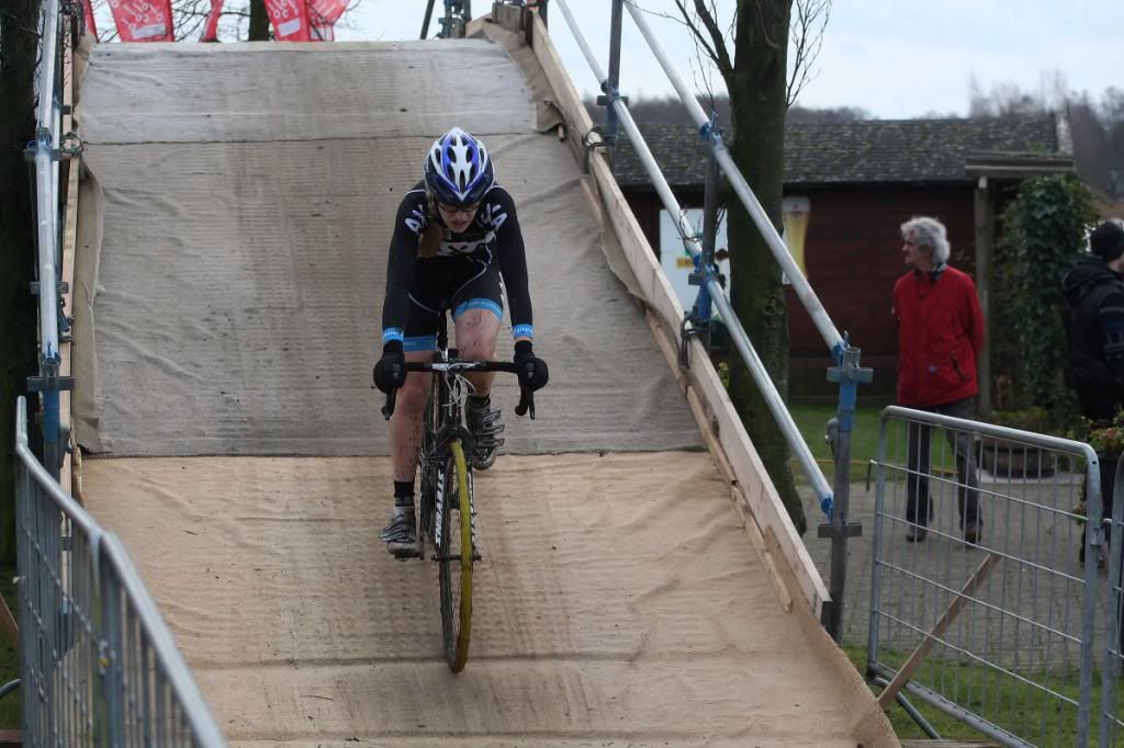 Vandaag voor de derde keer, dit seizoen, naar Woerden. Voor de middag waren eerst de jeugdcategorieën aan de beurt. Wij waren om half twee aan de beurt, 2 minuten na de nieuweling jongens. Zoals altijd was het erg modderig en blubberig op het parcours. Mijn start was goed, maar na de tweede bocht liep het even niet en werd ik ingehaald door een aantal rensters. Daarna ging het best wel goed en haalde ik weer rensters in. In de laatste ronde had ik moeite met mijn fiets optillen, door alle modder was de fiets wel twee kilo zwaarder geworden. Ik ben vandaag als zevende geëindigd en eigenlijk best wel tevreden.